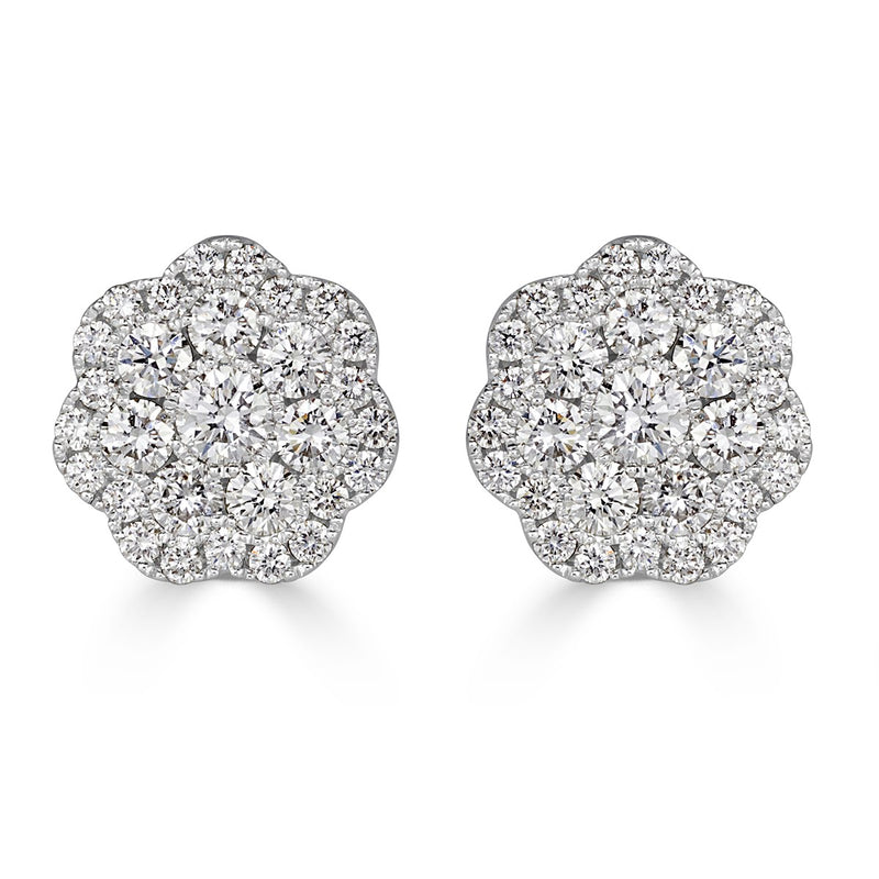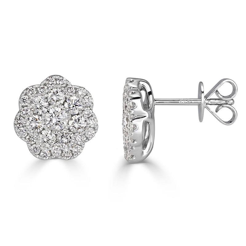 1.50ct Round Brilliant Cut Diamond Floral Halo Stud Earrings