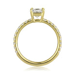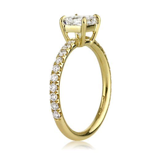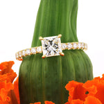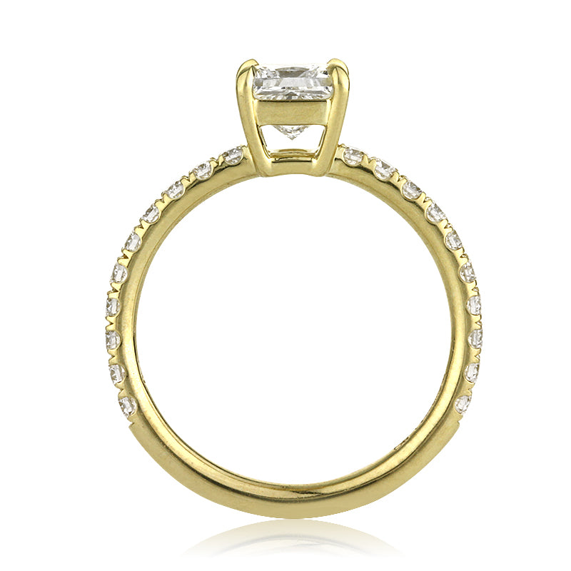 This simple, elegant and very beautiful princess cut diamond engagement ring has such an outstanding combination. The gorgeous 1.01ct princess cut center diamond is IGI certified at I-VVS2. The one carat center stone is white, practically flawless and has an outstanding cut! It is accented by round diamonds in a micropave setting, set on high polish 18k yellow gold. The diamonds stand out so beautifully with minimal metal showing. It is absolutely stunning!
