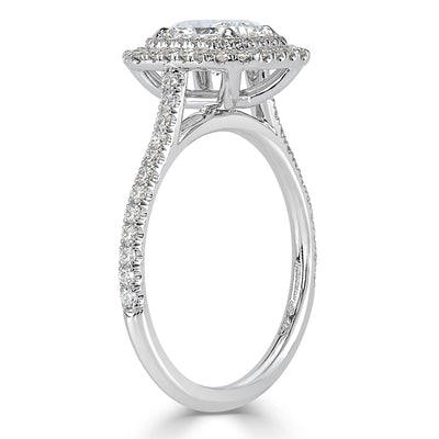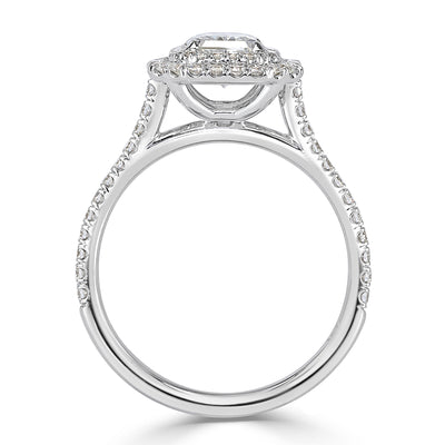 Everything about this radiant cut diamond engagement ring is truly captivating. Poised at the center, this marvelous GIA certified F-VS2 sparkler faces up exquisitely white. The cut is breathtaking with brilliance at every angle. The clarity on this stone is inclusion free to the naked eye and the gorgeous centerpiece achieves great balance with the surrounding double halo crafted in 18k white gold. Elegance at its finest!