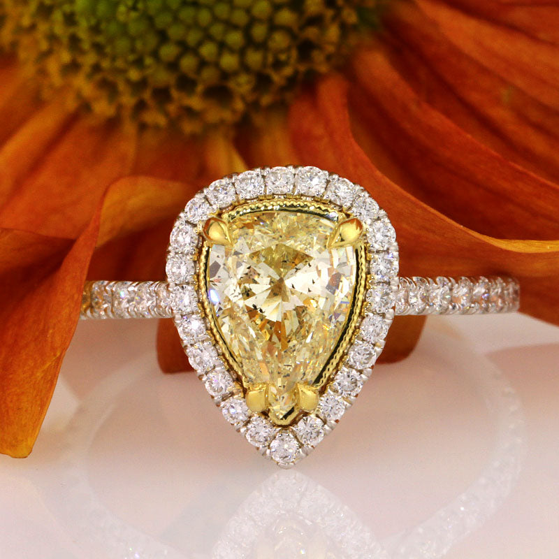 1.57ct Fancy Light Yellow Pear Shaped Diamond Engagement Ring