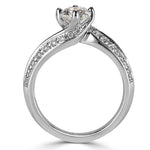 The 1.01 carat old mine cut showcased at the heart of this beautiful twisted engagement ring is a mesmerizing beauty. It is GIA certified G-SI2, a true value combination. It faces up white and nearly eye clean. The facet pattern is hypnotizing and displays an elegant light show. The setting is 18k white gold with two rows of round brilliant cut pavé diamonds. This vintage style engagement ring is unique from every angle.