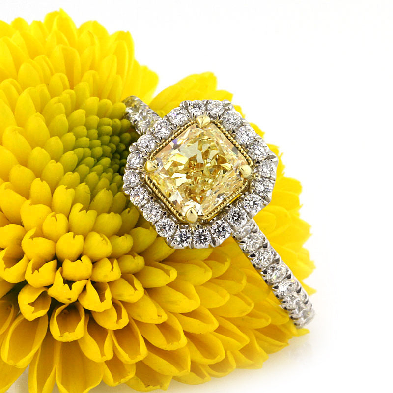 1.75ct Fancy Yellow Radiant Cut Diamond Engagement Ring