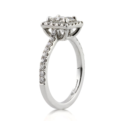 This stunning custom-made princess cut diamond engagement ring has a great combination! The simple, elegant and beautiful design showcases the 1.01ct princess cut center diamond perfectly. It is GIA certified (one of the leaders in diamond grading) at G-VS2, white and perfectly clear, even under 10X magnification! The cut is outstanding and it sparkles tremendously. It is surrounded by a halo of round diamonds and accented by round diamonds set down the shank in a micro pave setting. All you see are beautiful sparkly diamonds with hardly any metal showing. It is mesmerizing! You will love how this gorgeous princess cut diamond ring sits on your finger. Amazing in so many ways!
