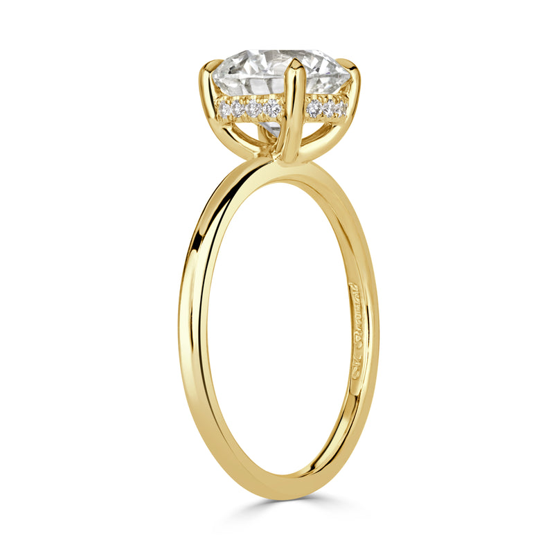 Celebrate your love with our exquisite 1.77ct Round Brilliant Cut Diamond Engagement Ring. The timeless beauty of the 1.70ct round brilliant cut center diamond, graded excellent in cut, polish and symettry, is elegantly showcased in a classic setting, radiating brilliance from every angle. A meticulously crafted band complements the center stone, creating a harmonious masterpiece. With a design that encapsulates your devotion, this ring is a stunning symbol of your shared journey and everlasting commitment.