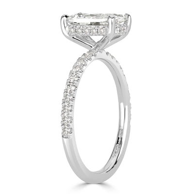 This magnificent old mine cut diamond ring is a tremendous value and so very beautiful from every angle. The 1.51ct elongated old mine cut center diamond is GIA Certified at G-VVS2. It faces up a brilliant white and is nearly flawless in clarity. The diamond displays immense fire and brilliance and affords an outstanding value with its incredible proportions of 9.49 x 6.58mm. This beauty faces up more like a 2ct+ diamond! The centerpiece is perched on top a finely detailed basket accented with a hidden halo detail. The high polished platinum shank features shimmering round brilliant cut diamonds going down the side for additional sparkle. This unique old mine cut diamond engagement ring is astonishing in so many ways!
