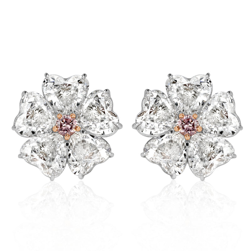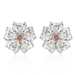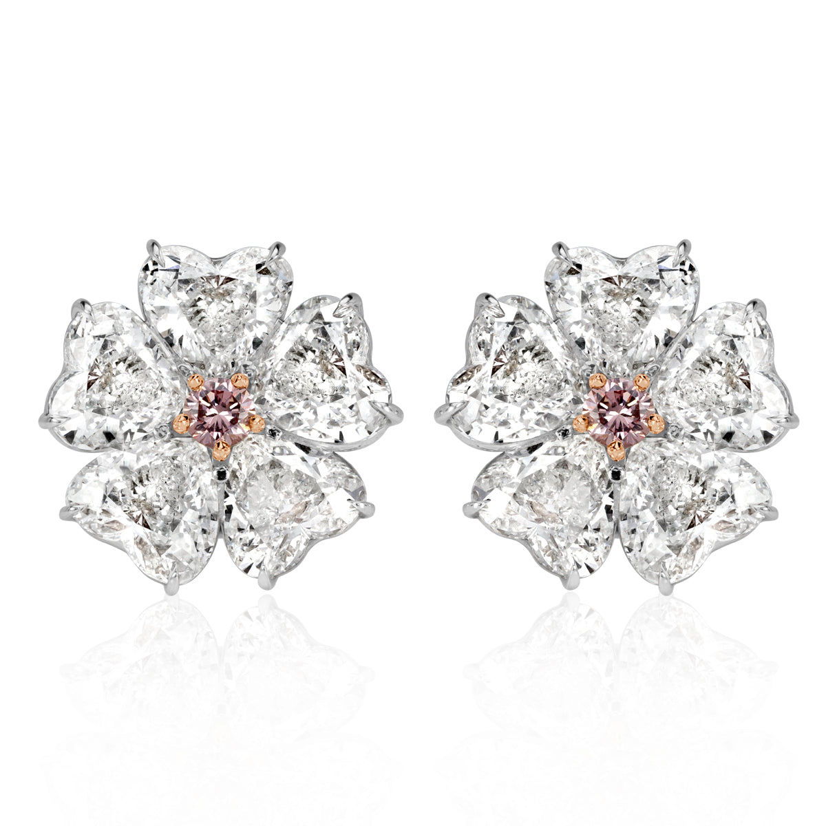10.64ct Heart Shaped Diamond Floral Stud Earrings with Pink Diamond Centers