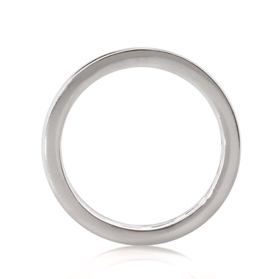 This beautiful round brilliant cut diamond eternity band features one row of round diamonds in a channel setting. The beautiful brilliance of this diamond eternity band will accent your engagement ring beautifully. It can also be worn as a stand alone band. The setting is made of high polish white gold. A gorgeous round diamond eternity band!