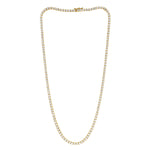 You will never want to take off this 11.88ct round brilliant cut diamond tennis necklace. The glistening diamonds are perfectly matched at a H-I, VS2-SI2 grading and display tremendous fire and brilliance. These eye-clean stones are set in a beautifully bright 14k yellow gold. Stand the test of time with this beautifully refined diamond necklace handcrafted at 16.5”.