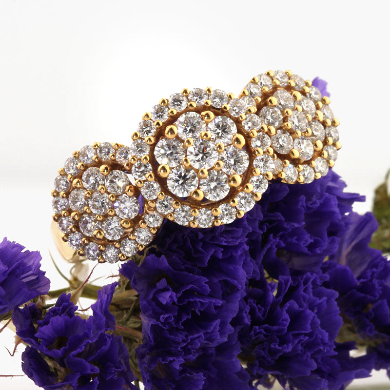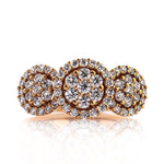 This stunning rose gold diamond ring is outstanding in every aspect. Super white and clear round brilliant cut diamonds are set in a three-stone design in high polish rose gold. The look is magnificent! The vibrant rose gold color combined with stunning white diamonds make an exceptional combination! A stunning piece you'll cherish forever!