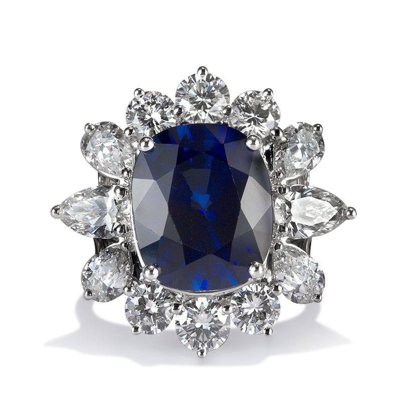 14.36ct Cushion Cut Sapphire and Diamond Ring