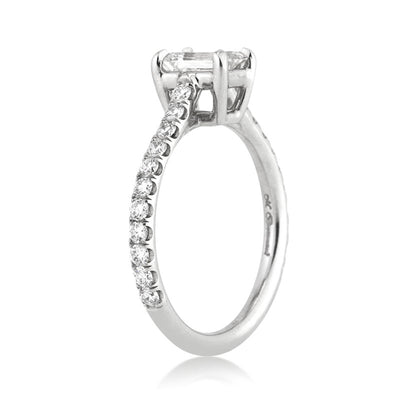 This simple, elegant and very beautiful emerald cut diamond engagement ring is amazing! It all starts with the exceptional 0.79ct emerald cut diamond set in the center. It is GIA certified at H-VVS2, white and practically flawless! The cut is outstanding and it looks almost as large as some one carat diamonds! It gives you tremendous value! It is accented by a row of round diamonds set in a micropave setting on high polish platinum. It is a stunning piece! Simplicity never looked so good.