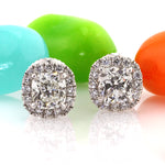1.55ct Cushion Cut Diamond Halo Stud Earrings in Platinum