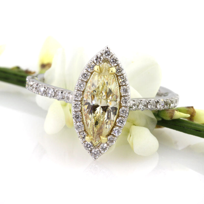 1.57ct Fancy Light Yellow Marquise Cut Diamond Engagement Ring