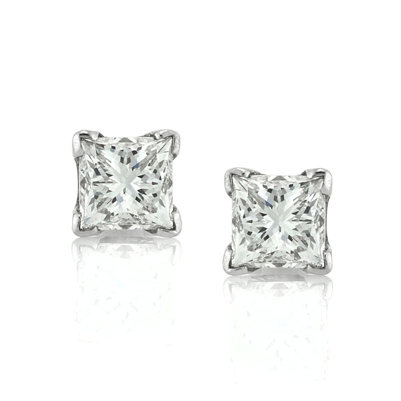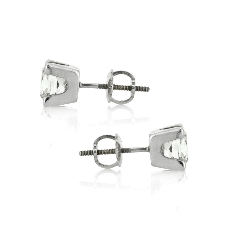 This lovely pair of princess cut diamond earrings total 2.02ct and are set on 14k white gold screw back mountings. The two carat diamond studs are perfect for every day wear.