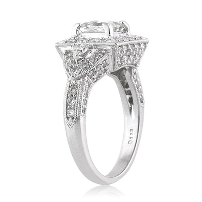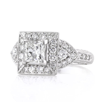 This mesmerizing princess cut diamond engagement ring is such a phenomenal value! The mesmerizing 1.03ct princess cut center diamond is EGL certified at G-I1. It is white, with an amazing cut and it sparkles tremendously! The inclusions are predominantly white and blend in giving you an eye clean look. It is beautifully accented by a halo of round diamonds in a pave setting with a beautifully designed shank featuring two larger round diamonds and a row of round diamonds pave set around them. The ring features round diamonds pave set on all three sides of the shank and on the center basket. It is truly amazing! You will love how this gorgeous piece looks on and will appreciate the magical brilliance it gives off!