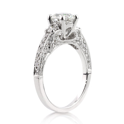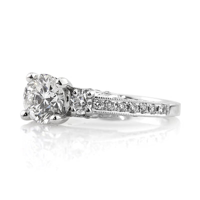 This stunning round diamond engagement ring has an exceptional combination of quality, design and value! It features a gorgeous 1.14ct round brilliant cut diamond in the center that is GIA certified (one of the leaders in diamond grading) at H-SI2, white and perfectly eye clean. The inclusion is off to the side and set under a prong giving you the same look as a VS quality diamond! The cut is exceptionally beautiful and it sparkles like crazy! It is accented by two smaller round diamonds flanked on its sides. The shank is pave set with round diamonds on all three sides and the center of the ring features a very unique and beautiful design as well. It is stunning from every angle! An amazing symbol of your love and devotion!