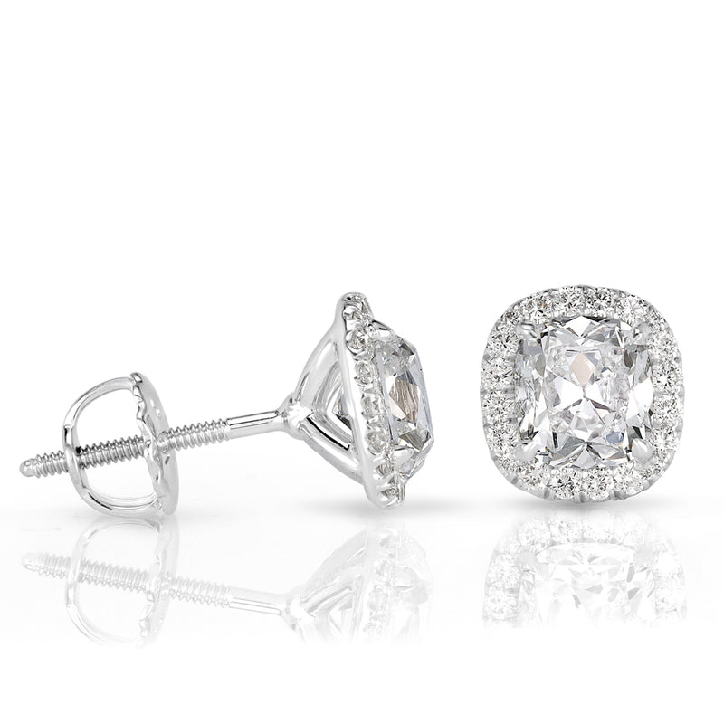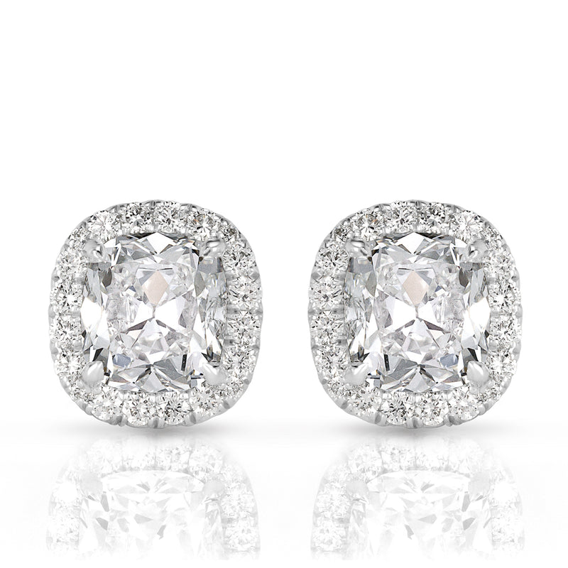 2.15ct Old Mine Cut Diamond Halo Stud Earrings