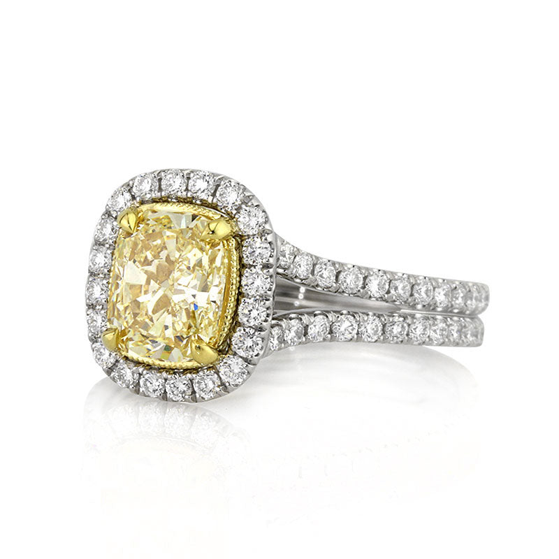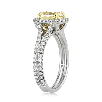 2.22ct Fancy Light Yellow Cushion Cut Diamond Engagement Anniverary Ring