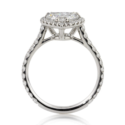 This sparkling heart shaped diamond engagement ring has a memerizing allure to it. It showcases a stunning 1.57ct heart shaped diamond that is EGL Certified at D-SI1. It is of top color and the inclusions blend into the diamond giving you a perfectly eye-clean look. The gorgeous custom-made platinum setting features a halo of round brilliant cut diamonds and a row of diamonds set down the shank in a micropavé setting. Designed for the classic and feminine lady, this heart shaped diamond engagement ring will have her head over heels in love!