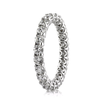 This magnificently beautiful round diamond eternity band is simple, elegant and has tremendous brilliance! Each and every diamond is hand selected to match perfectly at E-F color, VS1-VS2 clarity. They are each set under magnification by our master diamond setters in high polish Platinum. This round diamond eternity band is a perfect accent to your engagement ring or is can be worn on its own!