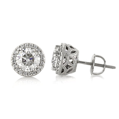 2.25ct Round Brilliant Cut Diamond Halo Stud Earrings