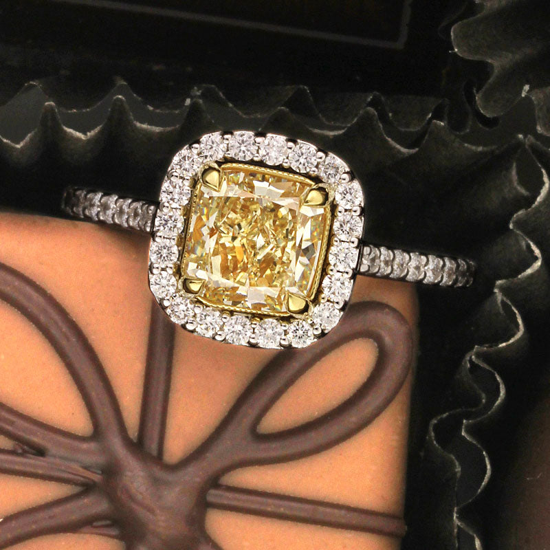 2.29ct Fancy Light Yellow Cushion Cut Diamond Engagement Ring
