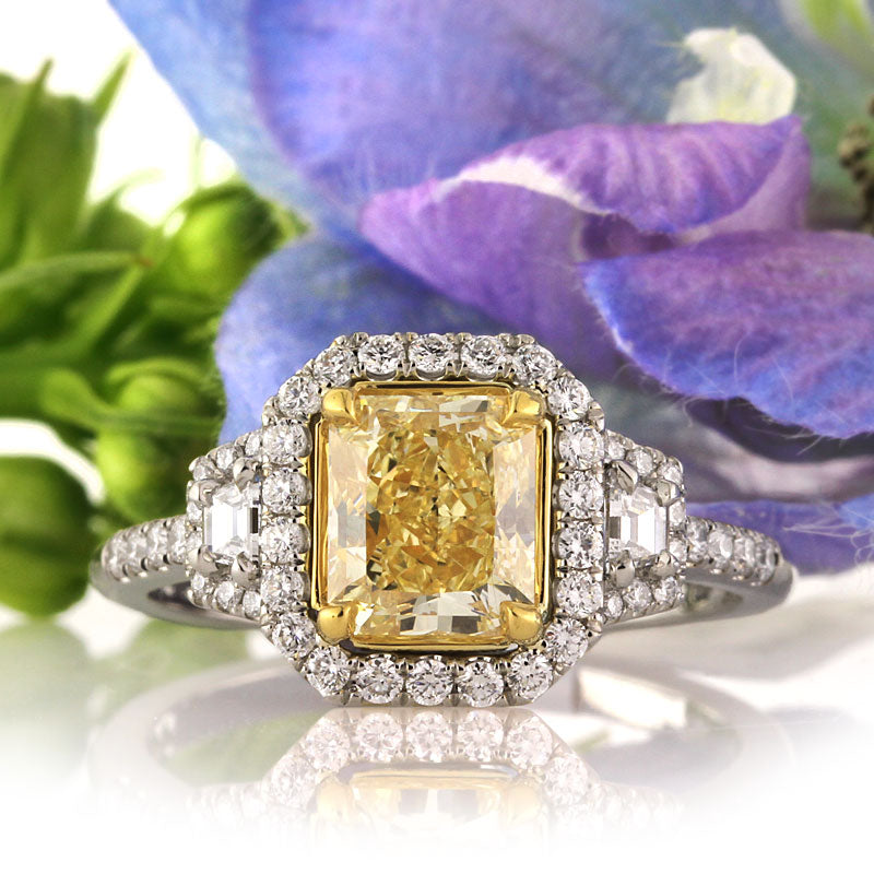 2.29ct Fancy Yellow Radiant Cut Diamond Engagement Ring