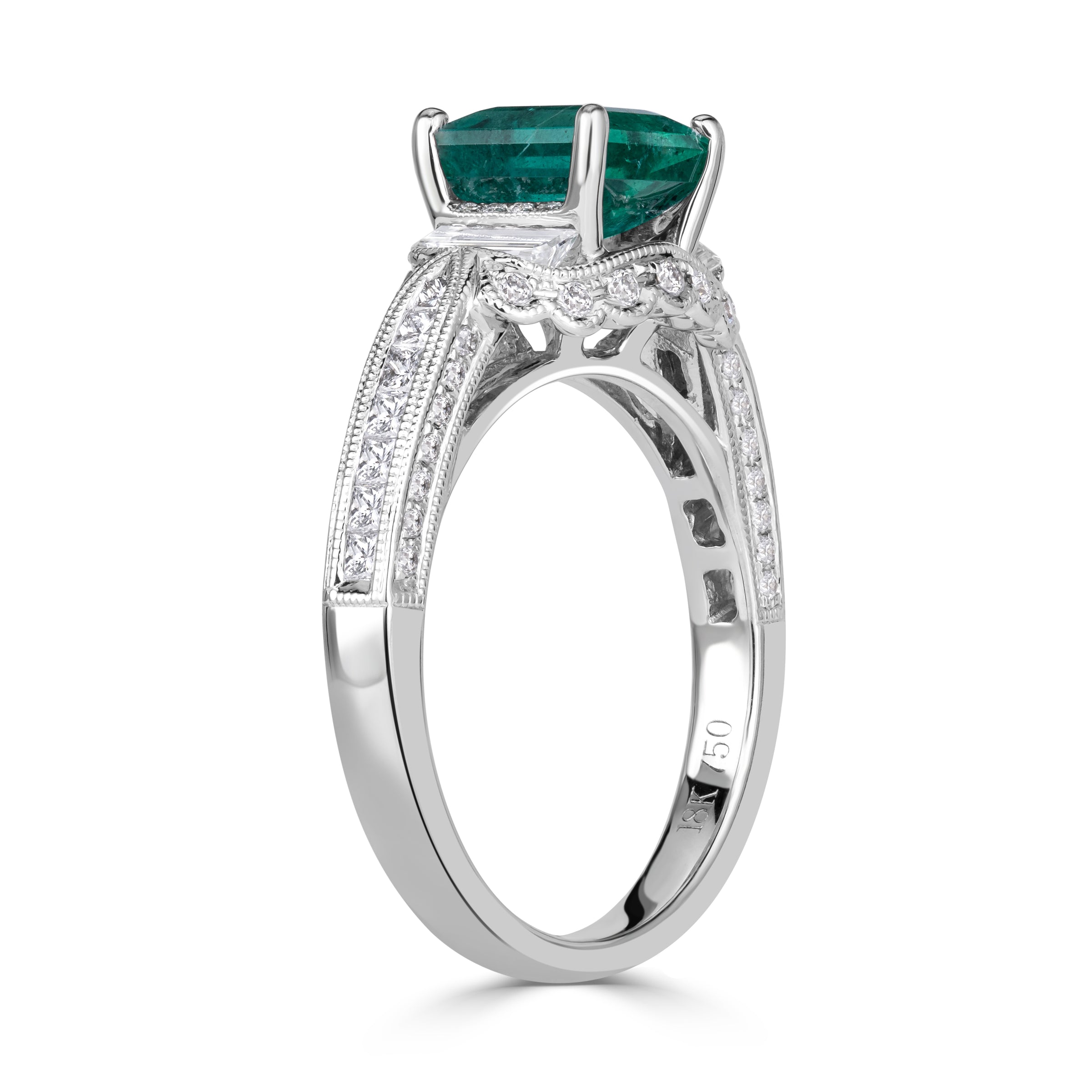 2.32ct Emerald Cut Green Emerald Engagement Ring