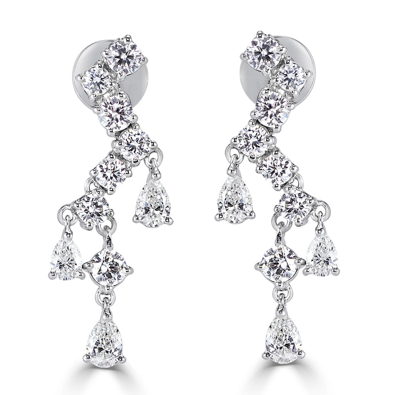 2.34ct Round Brilliant Cut and Pear Shaped Diamond Dangle Earrings