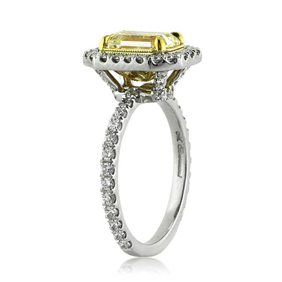 2.37ct Fancy Yellow Emerald Cut Diamond Engagement Ring