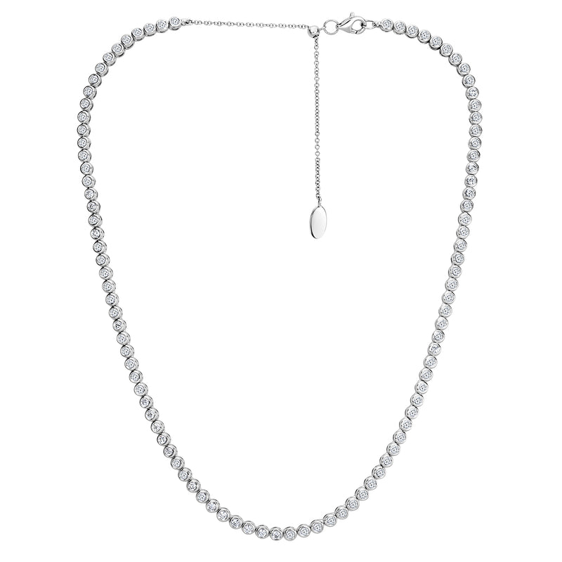 2.43ct Round Brilliant Cut Diamond Bezel Set Tennis Necklace in 14k White Gold