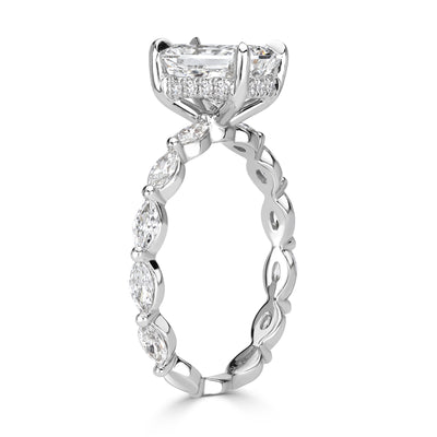 This gorgeous radiant cut diamond engagement is flirty and fun! The stunning 1.78ct center diamond is GIA certified at F-SI1 with amazing proportions of 8.02x6.26 mm. These incredible measurements allow this diamond to face up more like a 2ct stone, an amazing value! This beauty has incredible sparkle, facing up colorless and completely eye-clean. The centerpiece is set perfectly within our signature hidden halo styled basket and the shank is adorned with our bestselling marquise cut diamond design for a truly unique look. Set in a luxurious platinum metal, this sparkling radiant cut diamond engagement ring is sure to capture her heart for always!