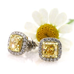 2.52ct Fancy Yellow Cushion Cut Diamond Stud Earrings