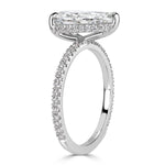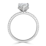This captivating pear shaped diamond engagement ring is such an outstanding value! The stunning 2.21ct pear shaped center diamond is GIA certified at G-VS1. It is exceptionally white, extremely clear and is also graded at top tier excellence for both polish and symmetry. The centerpiece measures at an astonishing 12.50 x 7.25mm and displays huge proportions! It is accented by round brilliant cut diamonds in a micropavé setting for the shank and beautiful hidden halo design. The diamonds sparkle tremendously. This luxurious platinum pear shaped diamond engagement ring is amazing from every angle!