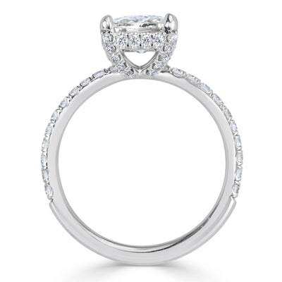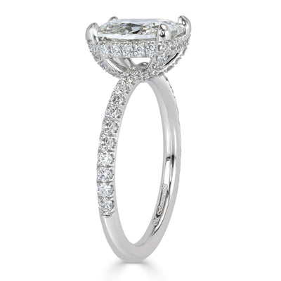 This rare old mine cut diamond engagement ring features a spectacular elongated 2.01ct diamond in the center. It is GIA certified at I-VS1 with incredible measurements! This diamond measures 8.78x7.66mm, giving you proportions of a 3ct diamond. It gives you tremendous value. Exceptionally clear with a bright sparkle! This beauty is set atop an elegant platinum setting adorned with micro-pavé set round brilliant cut diamonds. They shine tremendously as they decorate the ring shank and peek out from between the prongs in this lovely design. The perfectly classy ring for the perfectly classy lady in your life.