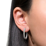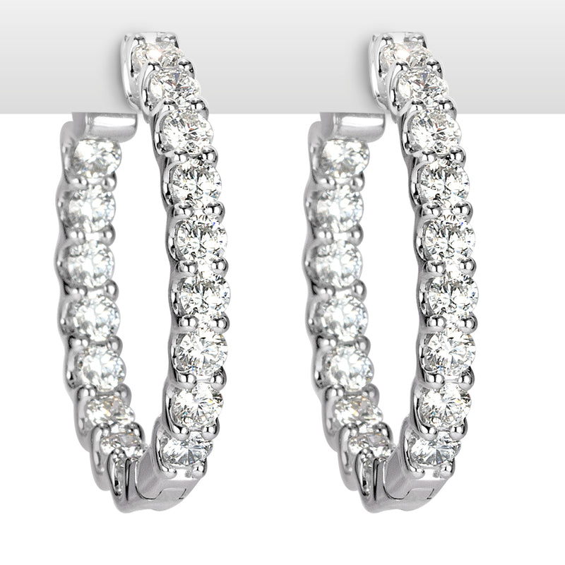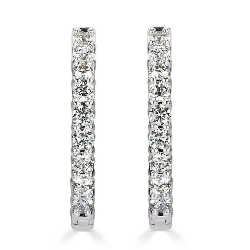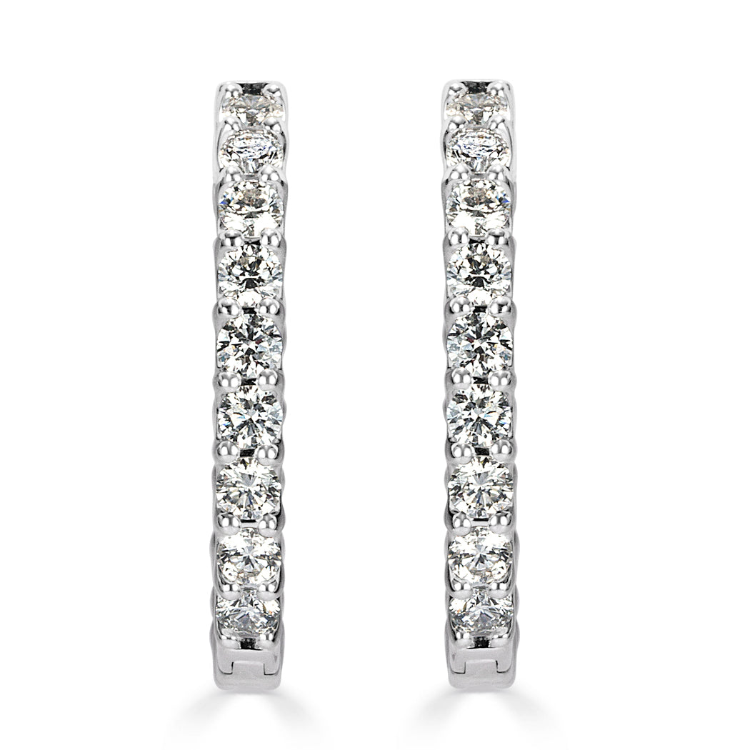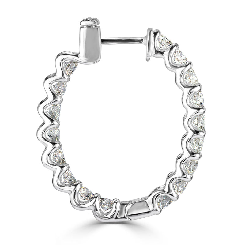 Medium size and perfect for everyday wear. At 2.80 carats, these hoops earrings are sure to become a wardrobe staple. The setting is 14k white gold and the diamonds are set in ”U” prongs.