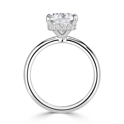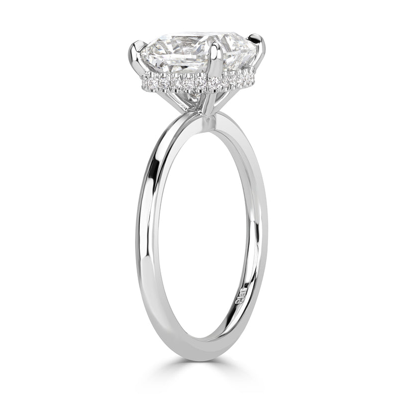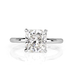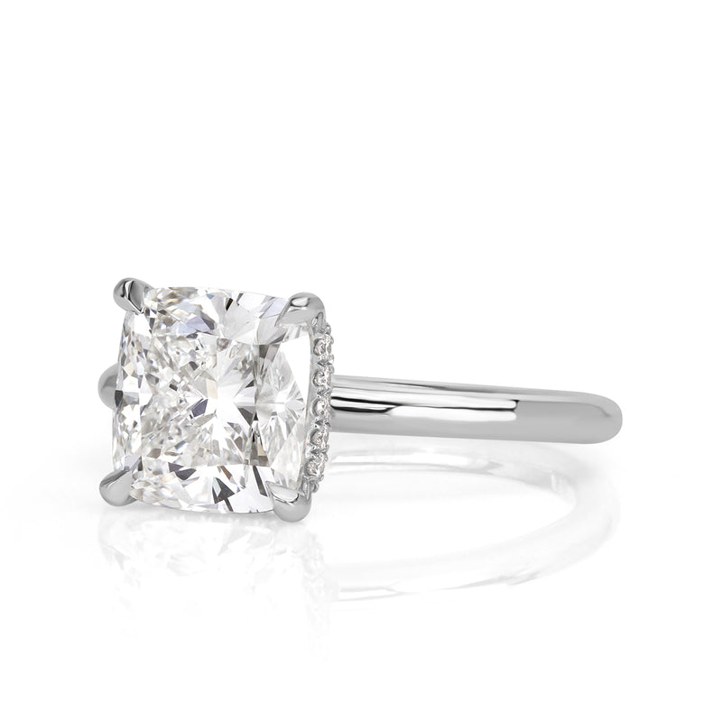 Sparkle from every angle with this dreamy cushion cut diamond engagement ring. The stunner features a 2.71ct cushion cut diamond that is GIA certified at F-VS1. It is amazingly white and extremely clear! The center diamond has beautiful proportions of 7.79x5.34mm. The handcrafted platinum setting features a sleek solitaire shank and a dainty wrap basket of round brilliant cut diamonds. Give the girl of your dreams the ring she's been dreaming about!