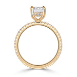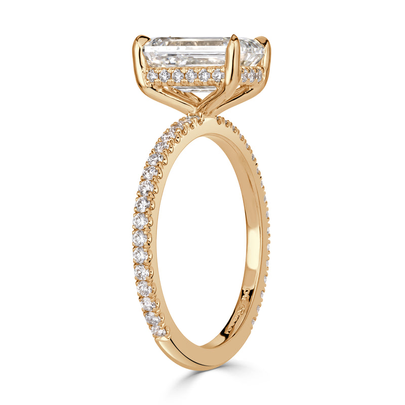 Discover profound beauty in our 2.92ct Emerald Cut Diamond Engagement Ring. A true embodiment of elegance, the emerald-cut diamond radiates timeless allure. Certified at H color VVS2 clarity; and with huge proportions at 9.28 x 5.99mm this diamond is sure to impress! Nestled gracefully within a micropavé diamond setting, it captures the essence of your love's brilliance. Exquisite craftsmanship and stunning design unite, celebrating your journey with a symbol as remarkable and enduring as your bond.