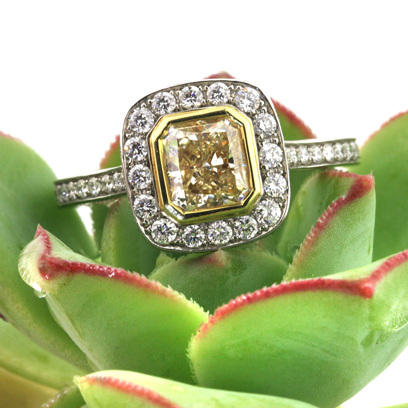 2.20ct Fancy Yellow Radiant Cut Diamond Engagement Ring