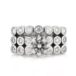 This stunning round diamond engagement ring features very brilliant diamonds in a gorgeous design. The 1.15ct round brilliant cut diamond set in the center is certified at H-SI2, white and extremely sparkly! The inclusions are small white feathers that blend into the diamond to give you an eye clean look. It is accented by round diamonds bezel set on its sides. It is stunning! The perfectly matching band is available to accent the engagement ring as well. It is set with round diamonds in a bezel setting. It has a total carat weight of 0.60ct, and it is set on 18k white gold as well. The price of the matching band is $995. A stunning bezel set diamond wedding set!