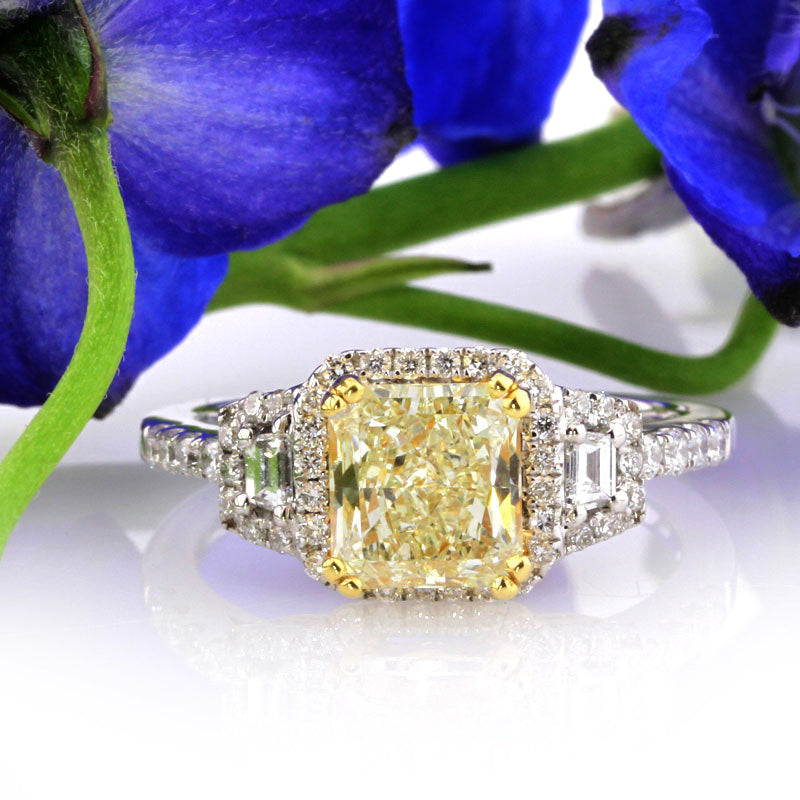 2.54ct Fancy Yellow Radiant Cut Diamond Engagement Ring