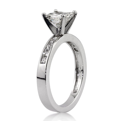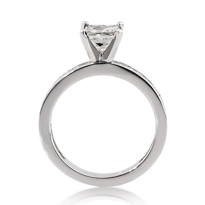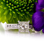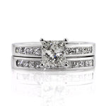 This stunning princess cut diamond wedding set has such a great combination and gives you tremendous value! The 1.20ct princess cut diamond set in the center is EGL Certified (one of the leaders in diamond grading) at H-SI2. It faces up white and eye clean! The cut is stunning and looks as large as a one and a half carat center! It is accented by a row of princess cut diamonds, channel set down the sides. The perfectly matching band is also set with princess cut diamonds in a channel setting for a perfect compliment to the engagement ring. This beautiful set is simple, elegant and extremely brilliant. You will love it!
