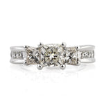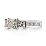 This very unique and beautiful three-stone princess cut diamond ring has so much style and elegance! The gorgeous 1.06ct princess cut diamond set in the center is EGL certified (one of the leaders in diamond grading) at H-VS2, near colorless and very clear! It is flanked by two princess cut diamonds. They all have tremendously beautiful cuts and sparkle like crazy! The shank is set with a row of princess cut diamonds set in a channel setting. The center prongs holding the three stones in the center are so beautiful! There is a small princess cut diamond bezel set on either side, right underneath the center for an added touch of sparkle. Simply stunning!