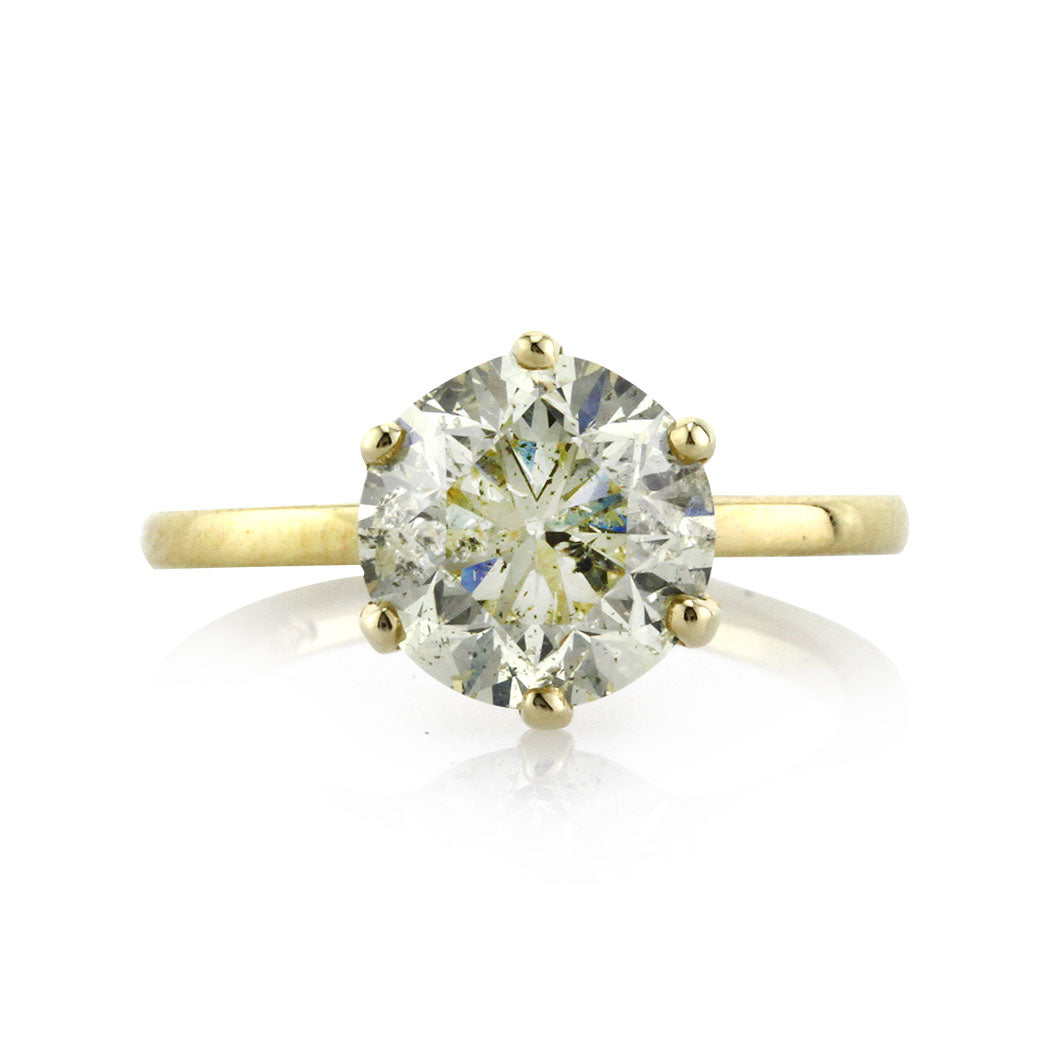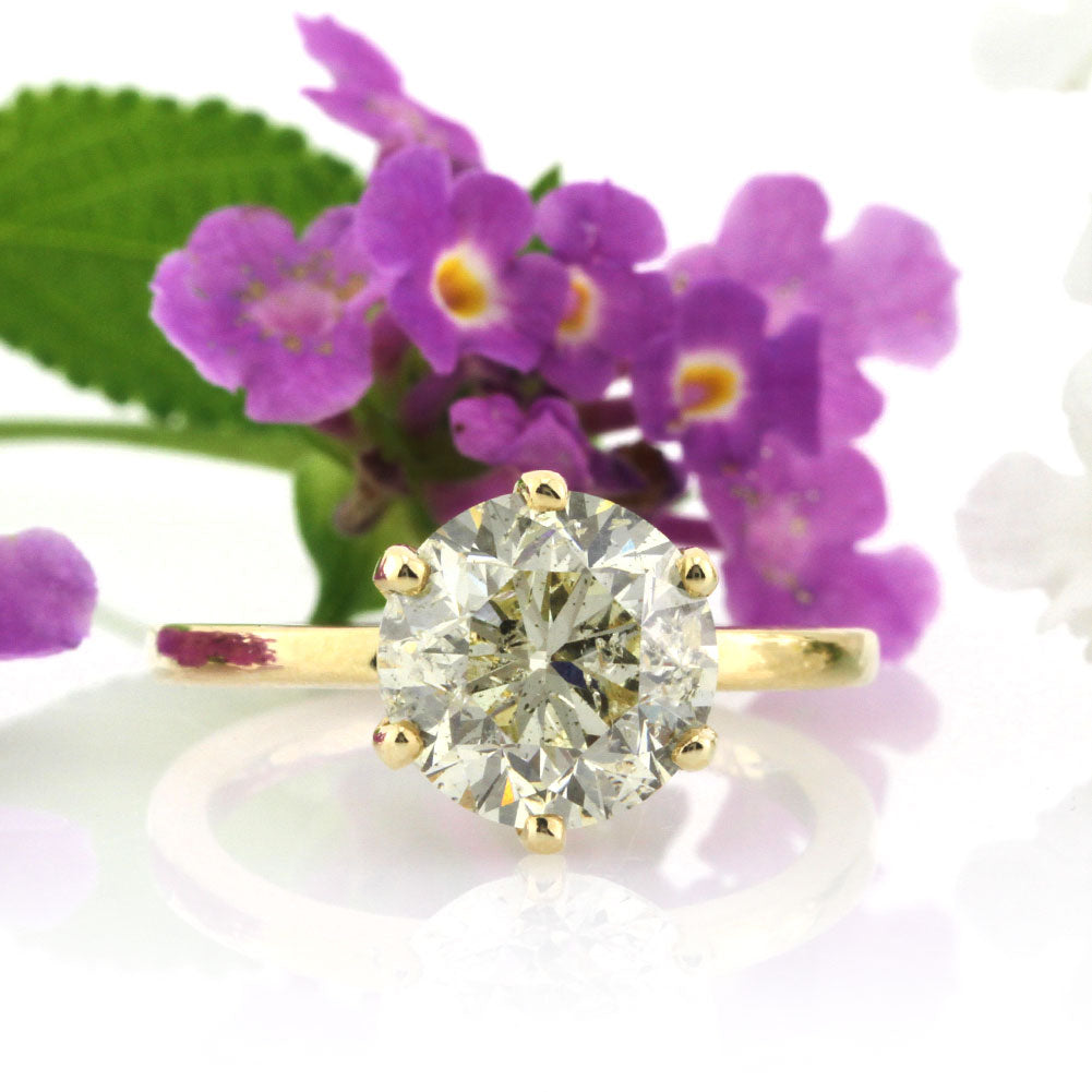 This round brilliant cut diamond solitaire is a true gem! The gorgeous light yellow 3.00ct round diamond is EGL certified at S-T SI3. It has a warm lemon yellow color, and it sparkles beautifully. This gorgeous solitaire affords you a large and brilliant diamond at a great value. Enjoy the simplicity of this elegant solitaire on your finger!