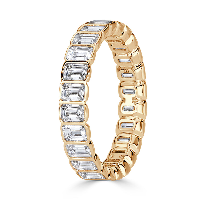 3.01ct Emerald Cut Diamond Bezel Set Eternity Band in 18k Champagne Yellow Gold