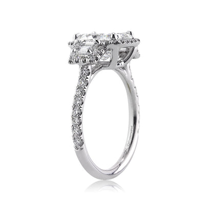 From every angle, the brilliance from this radiant cut diamond engagement ring is apparent. The custom-crafted setting showcases a 2.04ct radiant cut diamond GIA graded at F-SI2. It is completely colorless and the cut is incredibly bright! The two carat center stone is flanked by two trapezoid cut diamonds and further accented by numerous bright, white round brilliant cut diamonds. This is truly a masterful work of art.