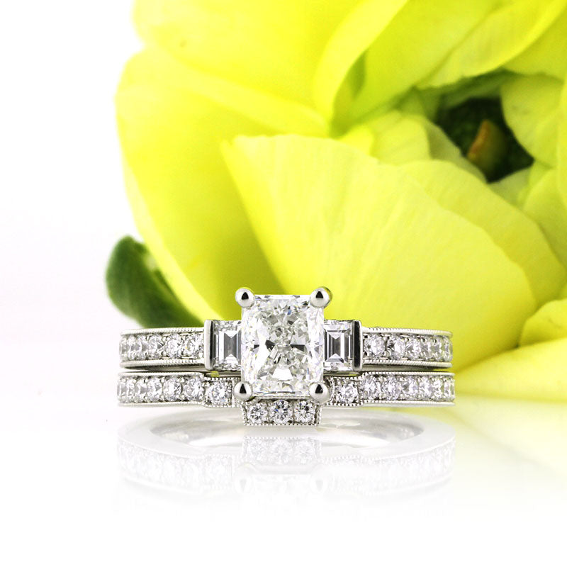 3.15ct Radiant Cut Diamond Engagement Wedding Set