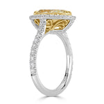 This dazzling pear shaped diamond engagement ring sparkles tremendously with amazing value! It showcases a stunning 2.77ct pear shaped diamond that is GIA certified at X-VVS1. The vibrant warmth of this beauty is truly remarkable and faces up more like a fancy yellow grade. The diamond has huge proportions of 11.82 x 7.99mm and looks even larger with the addition of a dainty micropavé halo! Additional sparkling round brilliant cut diamonds are handset extending down the shank of this platinum and 18k yellow gold setting. A forever kind of ring for your forever love!
