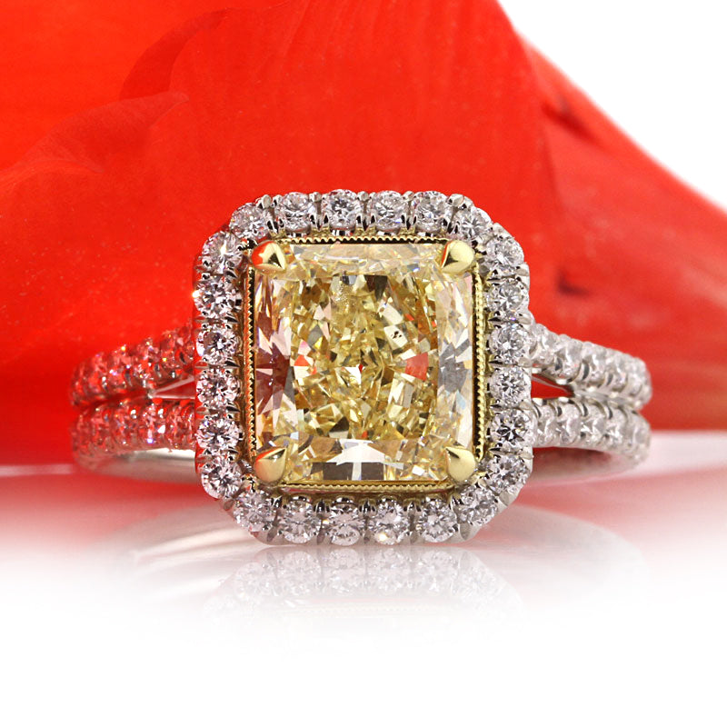 3.42ct Fancy Light Yellow Radiant Cut Diamond Engagement Ring