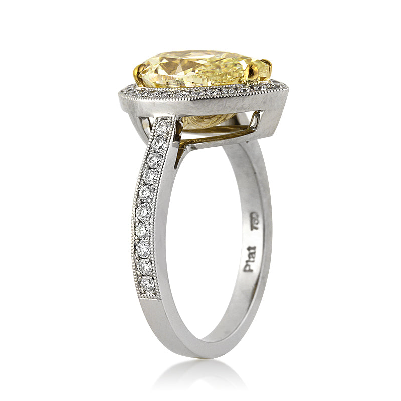 3.58ct Fancy Light Yellow Pear Shaped Diamond Engagement Ring